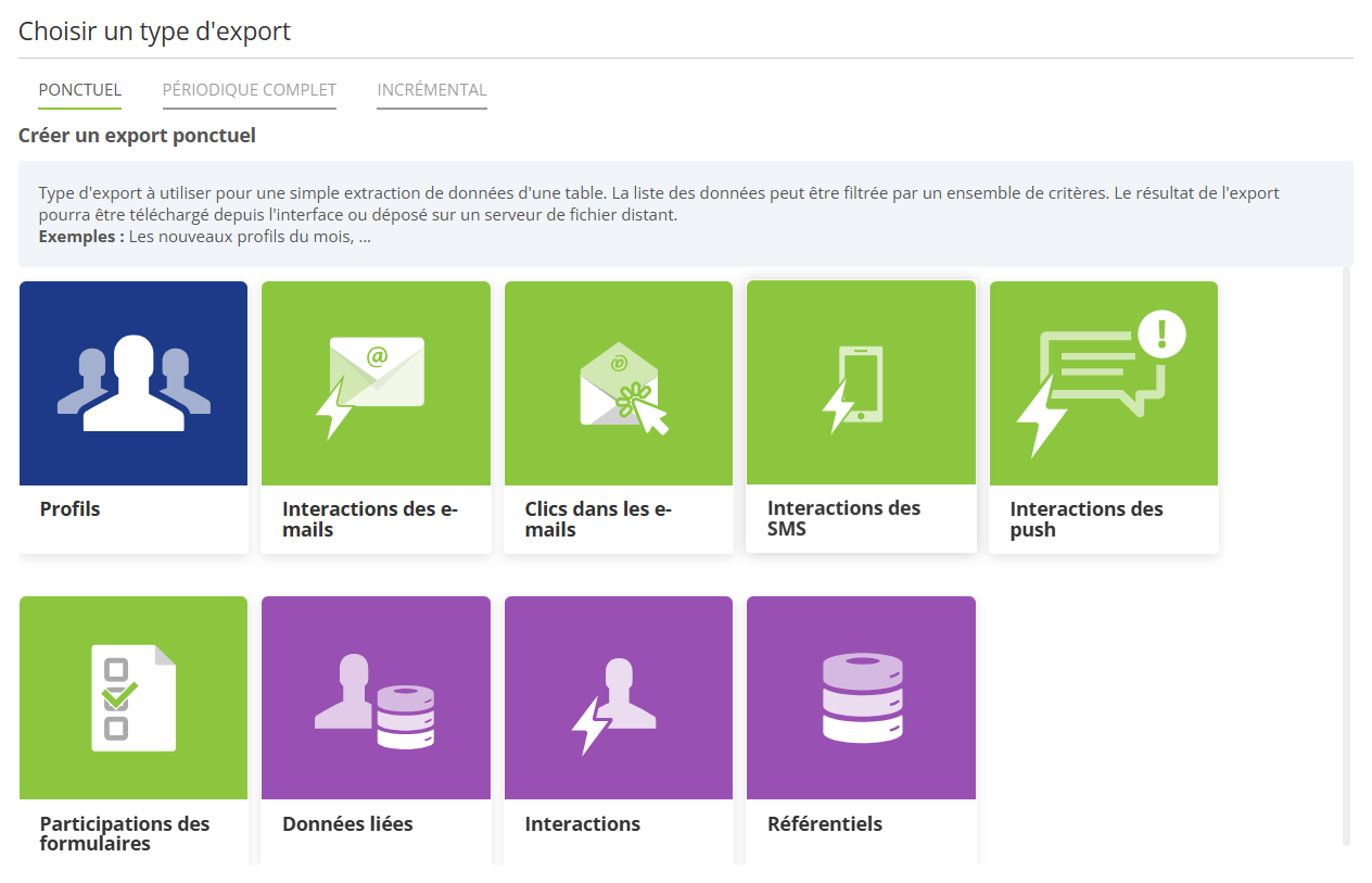 Vous pourrez alors créer un nouvel export en cliquant sur "Créer un export".